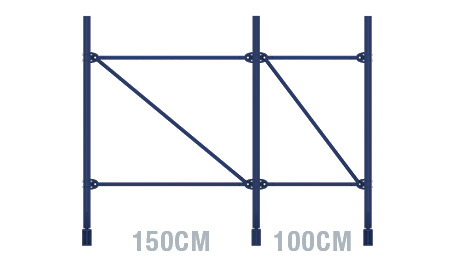 Diagonal braces + cross braces are used for stiffening between the uprights and increase stability