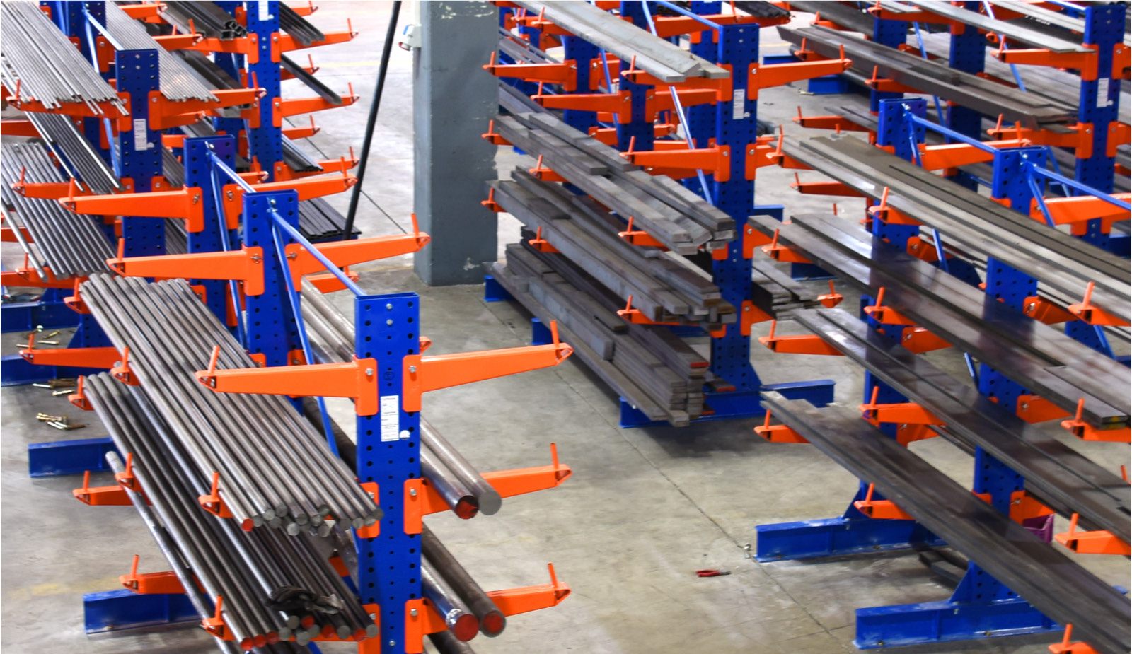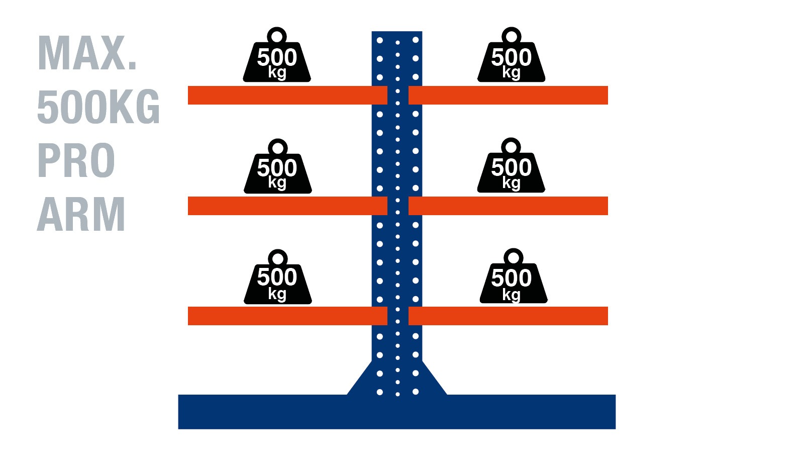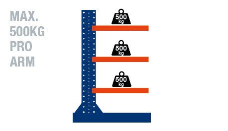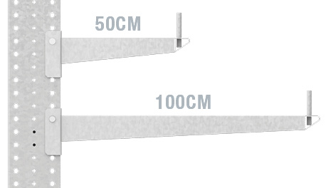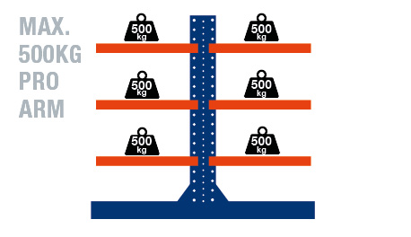 - single + double sided cantilever rack with freely adjustable arms in a 5cm grid in height