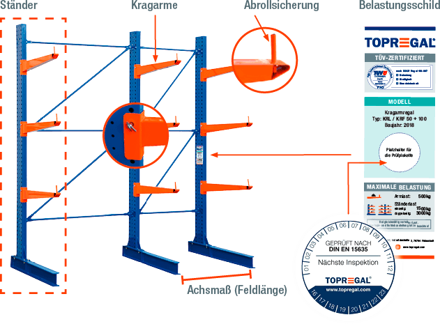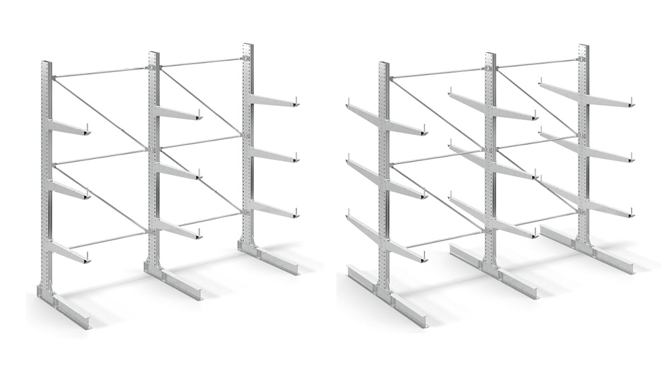 - Configure your cantilever rack individually with your desired bay lengths. Our racks can be extended at any time, due to the modular construction.