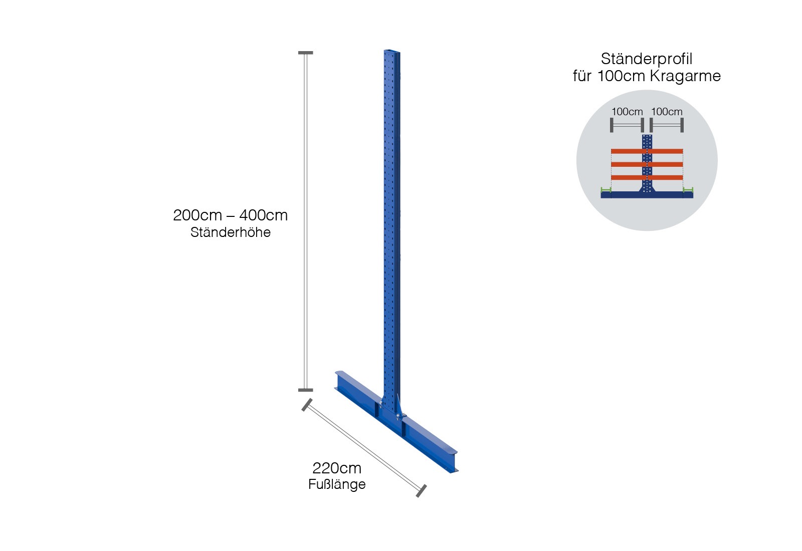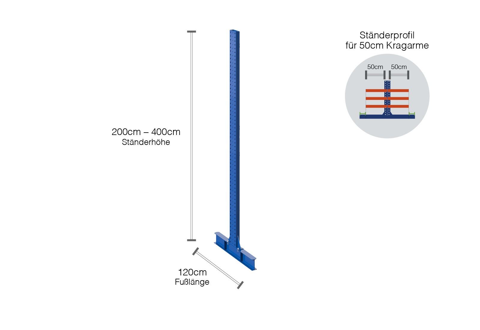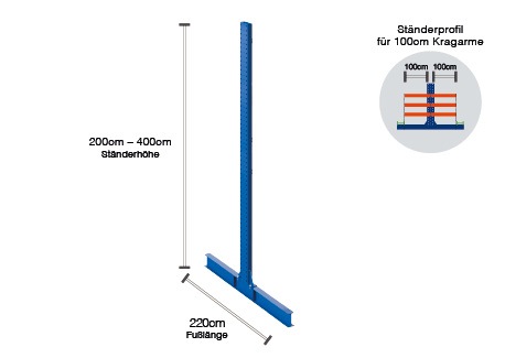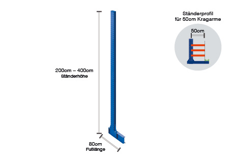 Overview uprights cantilever rack KR3000