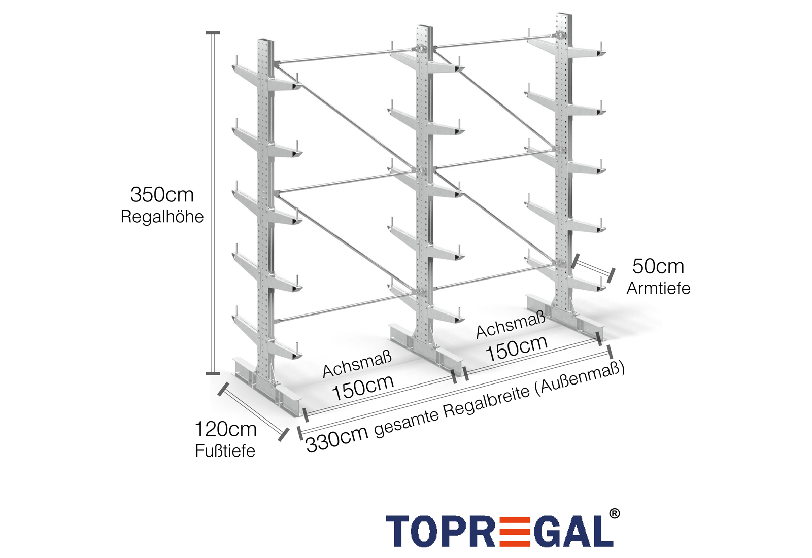 3,3 m cantilever rack KR3000 / Hot-dip galvanised / Double-sided / 3,5 m high / 50 cm cantilever depth / 5 levels