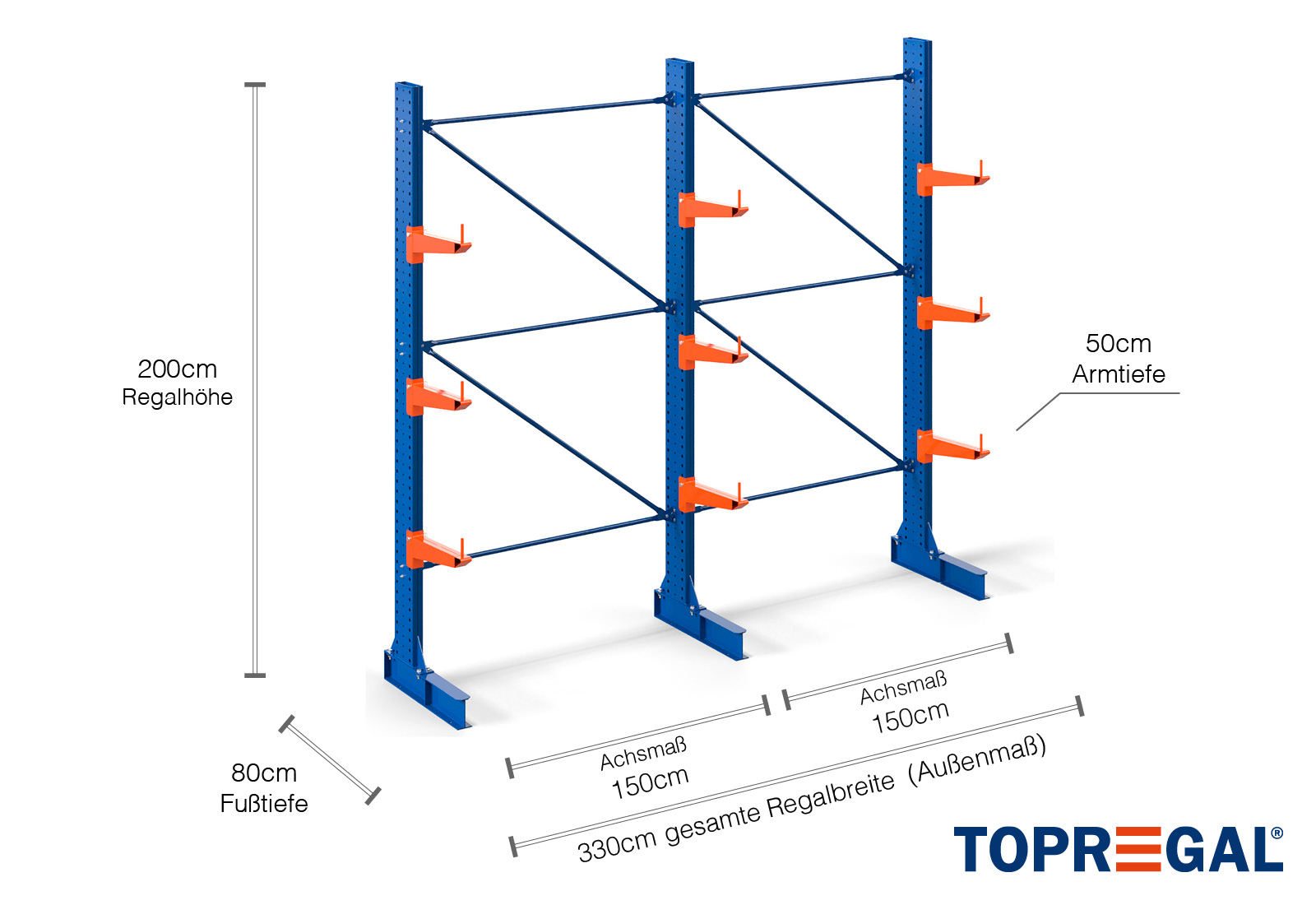 The axial dimension is the internal dimension between two shelf uprights. Depending on the cantilever type, we offer these fields in 120 cm (KR2500) and in 100 cm / 150 cm (KR3000 / KR6000).