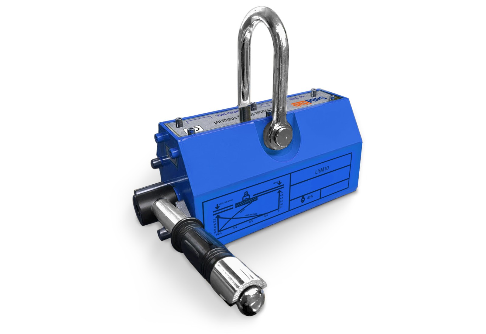 Now SolidHub has the solution: the LHM10 industrial lifting magnet lifts loads of up to 1.000 kg with ease. Just place the device on the smooth surface of a sheet and flip the lever. The sheet can then be lifted using a crane or other lifting device. This is done by simply hooking a sling or hook into the shackle. The compact lifting magnet (230 mm x 410 mm x 260 mm) weighs just 33 kg, which helps with transport and handling.