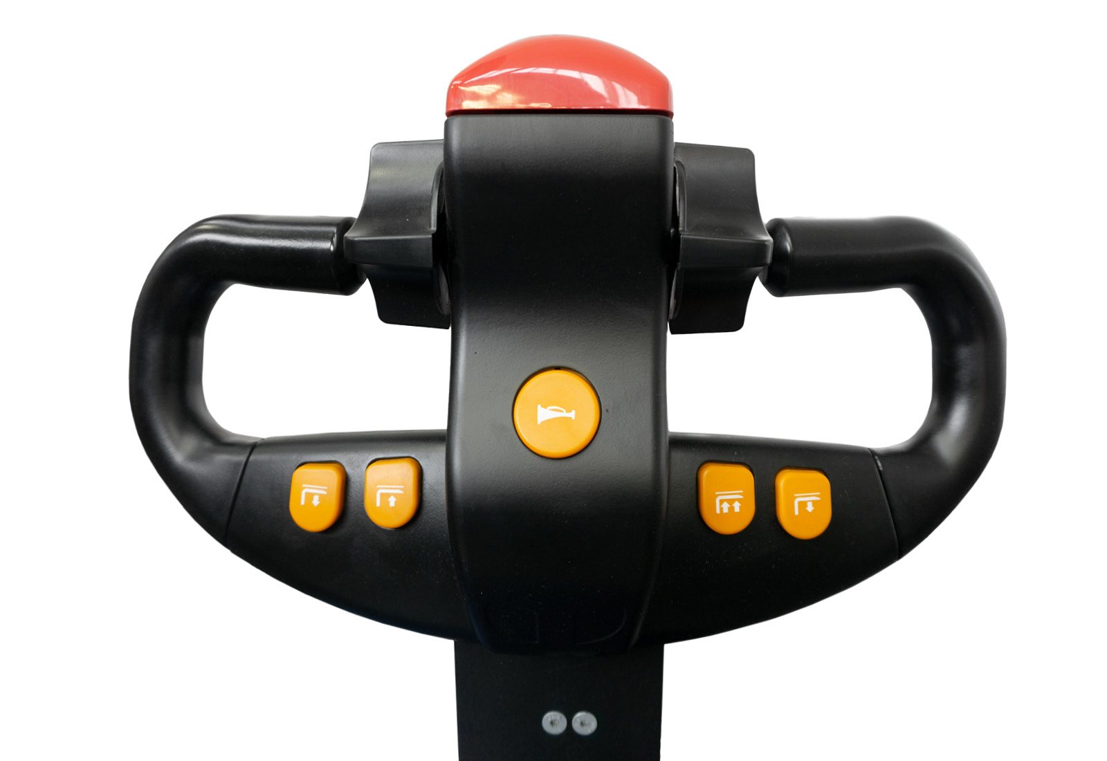 The ergonomically designed tiller enables user-friendly control of all lifting and lowering functions conveniently via the multifunction tiller knob. All important control instruments such as battery charge indicator, hour meter, emergency stop switch and key are centrally located and in the operator's direct field of vision.