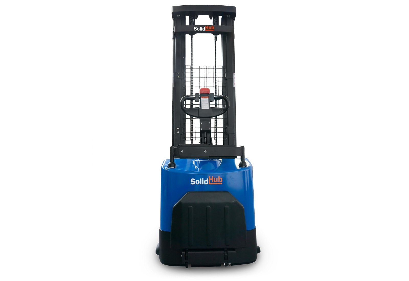 The SolidHub HEF1200/4 assists in transporting, picking and stacking loads up to 1.200 kg and a lift height of 90 - 4.000 mm. Due to the low noise level of 69 dB, even longer work with the electric high lift truck is pleasant.