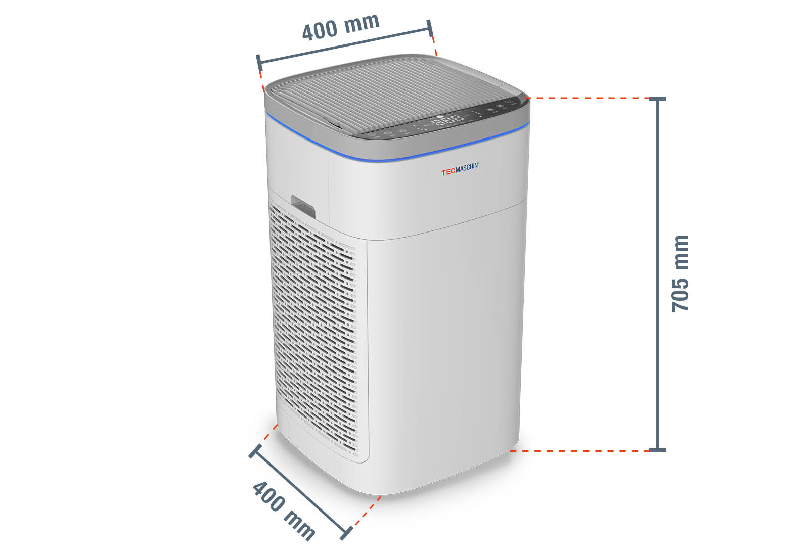 Possible with the powerful air purifier LR800 from TecMaschin. It reliably filters house dust, pollen, viruses, bacteria, animal hair and odours from the air. The two built-in H13 HEPA honeycomb activated carbon filters ensure that 99.95% of all particles are sucked in. This makes the air purifier ideal for guaranteeing healthy indoor air in restaurants, waiting rooms and classrooms, day-care centres, conference rooms and open-plan offices with an area of up to 96 m². In other words, where many people come together. With a cleaning capacity of up to 800 m³/h, it ensures clean air in a short time and helps to reduce the risk of infection by viruses in closed rooms.