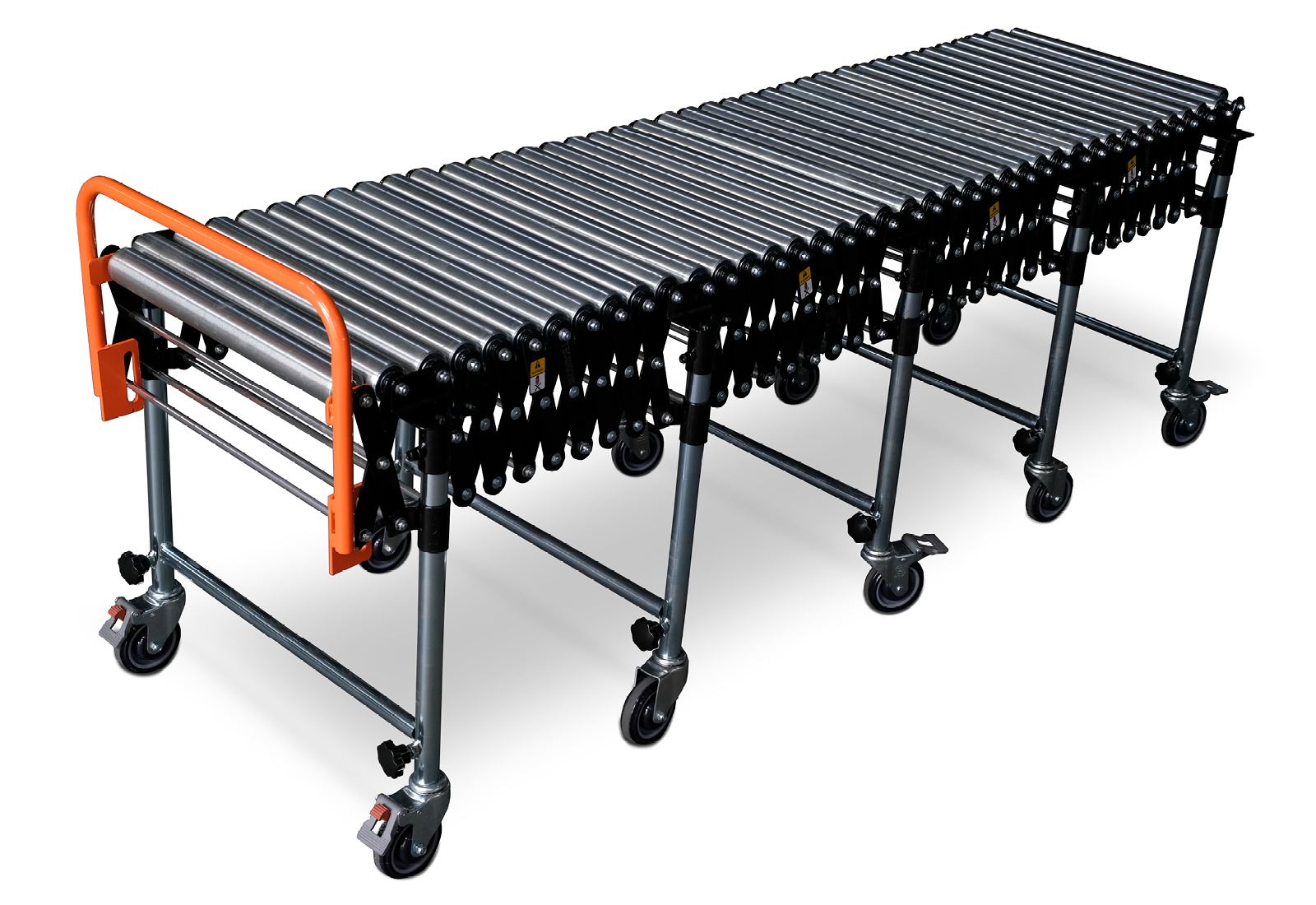 Mobile scissor roller conveyor FRB-S5, Steel rollers, 4.700 mm, TecMaschin