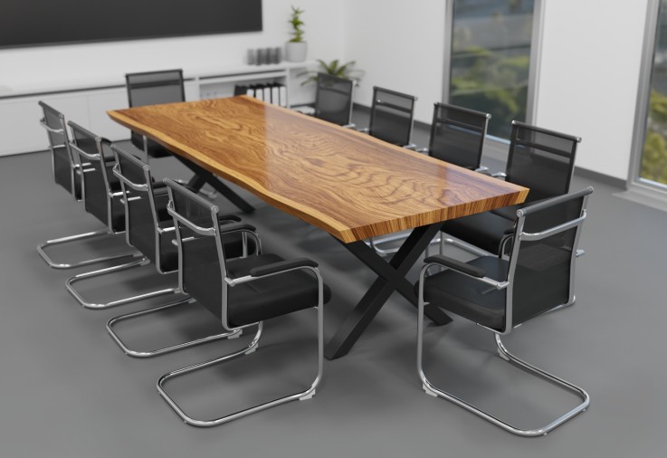 TOPREGAL GmbH has developed the LINA conference table for large meetings and heavy loads in everyday corporate life. Puristically elegant and in industrial design, this model is suitable for conference rooms, upscale canteens and as a meeting and work table in a modern office environment. With a length of 280 × 105 cm, the table can seat 10 people, and the 350 × 135 cm version can seat as many as 12, while the ergonomic height of 75 cm fits all standard seating chairs. The table impresses with a continuous and solid six-centimeter-thick solid wood top made of Parota with a natural look and shape, as well as lively Asteinschuss, whose surface is nevertheless smooth, thanks to the robust melamine coating. Each piece is unique. The straight-lined contrast to the originally shaped tree edge is provided by the strong base made of powder-coated black metal in an X-shape. "As an industrial company, we know exactly what requirements office furniture has to meet in everyday use. It was important to us to find a solution that was robust, strong and durable as well as aesthetically pleasing, modern and sustainable. The result is an industrial design table from an industrial professional," explains Jürgen Effner, Managing Director of TOPREGAL GmbH. Both model variants can be easily ordered online and are delivered directly.