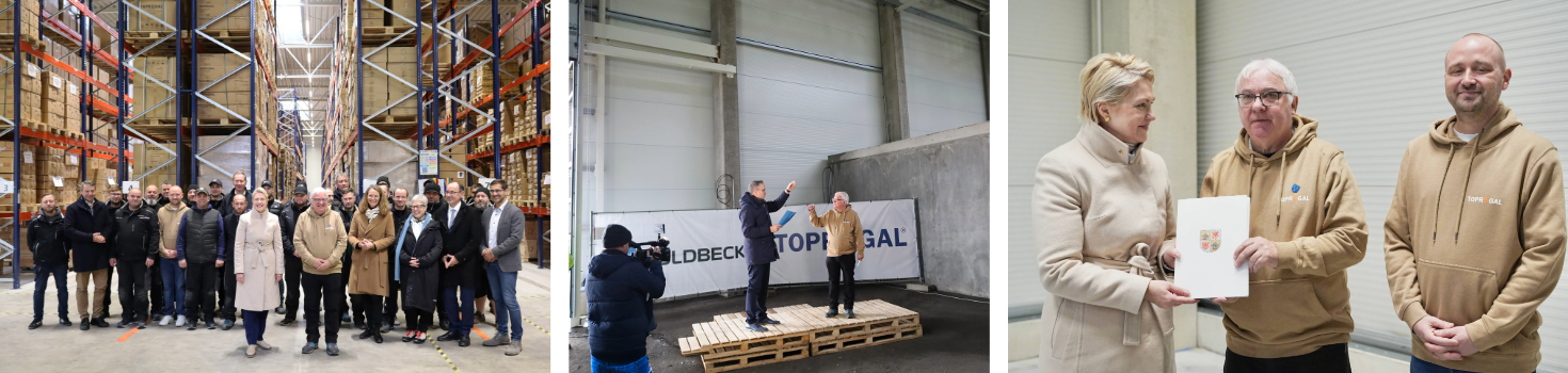 The expansion of TOPREGALS' warehouse and production facility in the Berlin-Stettin Industrial Park in Pasewalk is progressing steadily: just three years after settling in the industrial park and completing the first four halls, the medium-sized company for warehouse and factory equipment celebrated the topping-out ceremony for two new halls on December 3, 2024. Numerous invited guests - including Manuela Schwesig, Minister President of the State of Mecklenburg-Vorpommern, Wolfgang Blank, designated Minister for Economic Affairs, Infrastructure, Tourism and Labor of the State of Mecklenburg-Vorpommern - attended the ceremony, Parliamentary State Secretary for Western Pomerania and Eastern Mecklenburg Heiko Miraß, Head of Division at the Ministry of Economic Affairs, Infrastructure, Tourism and Labor Mecklenburg-Vorpommern Ralf Sippel, District Administrator of the Vorpommern-Greifswald district Michael Sack and the Mayor of the town of Pasewalk Danny Rodewald - about the Pasewalk business park. After a welcoming address by Jürgen Effner and Gino Klatt, Managing Director of TOPREGAL GmbH, the traditional topping-out speech was given by Jörg Heuer, Head of the Goldbeck office in Schwerin. Manuela Schwesig then gave a speech. "TOPREGAL breathed life into the Berlin-Stettin industrial park with the first four halls. That was in 2021, and now two more halls are being added. This should create at least 20 new jobs. I am very pleased that TOPREGAL has been so well received in Pasewalk. The industrial park is a good example of what the state government wants to achieve with its industrial concept for Mecklenburg-Vorpommern: More industry. More added value. More jobs," said the Minister President. "After completing our first four halls with over 20,000 square meters of space, it quickly became clear that we also wanted to expand our Pasewalk site. These two new halls, each with 5,000 square meters of space, are therefore currently being built on an adjacent site. This will enable us to meet the high demand for our SoloPort brand products and create additional jobs. In the future, new products such as solar parking canopies will be manufactured, stored and shipped here," reports Jürgen Effner.