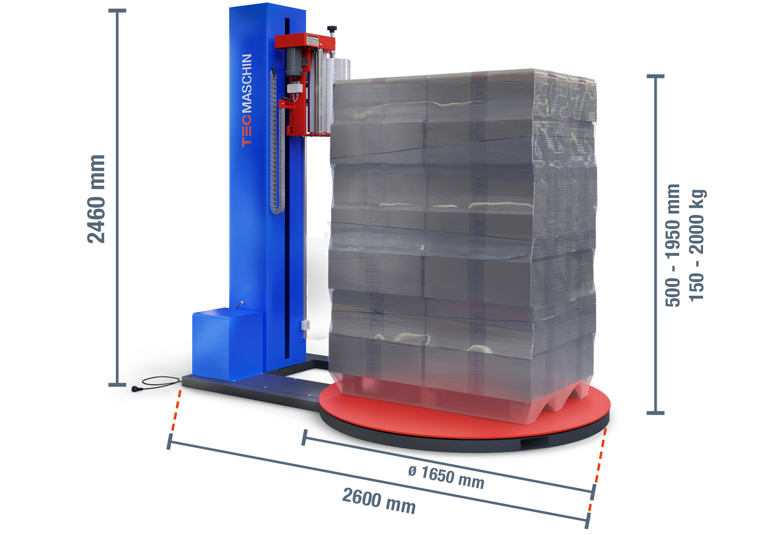- 1 x Pallet wrapper with 250 % pre-stretch, PWS1650, TecMaschin