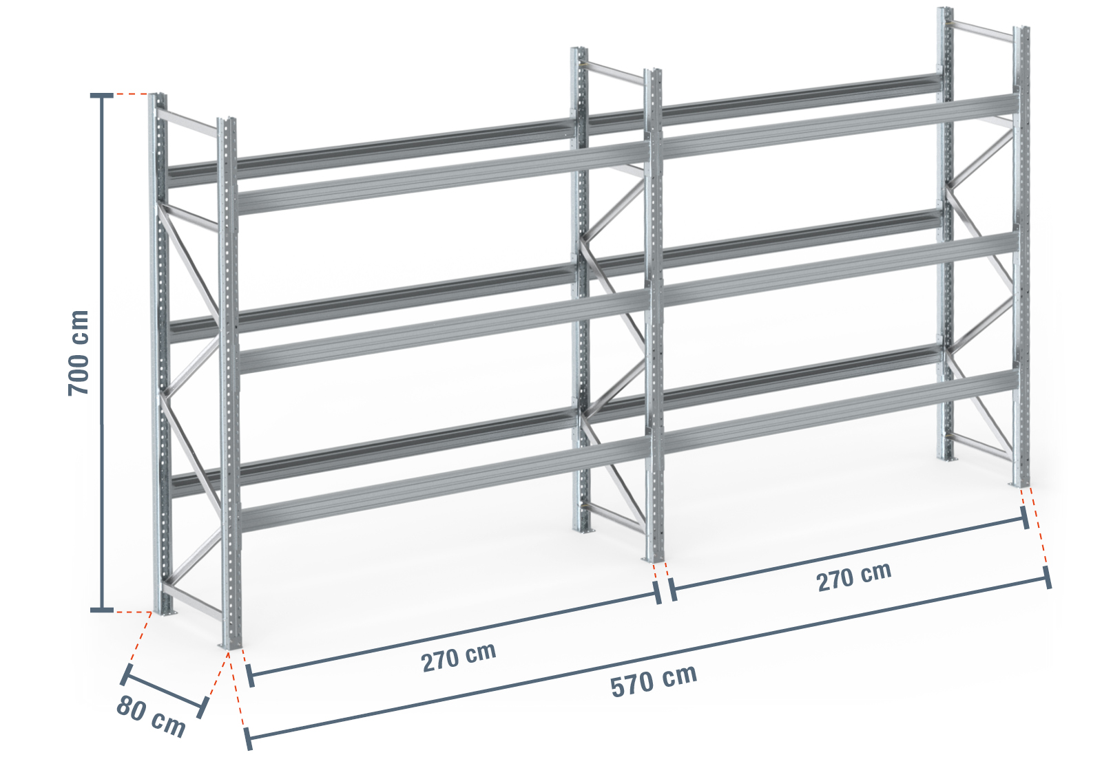 5,7 m pallet rack PR9000F galvanised / 80 cm deep / 7 m high / 3 levels for 24 euro pallets