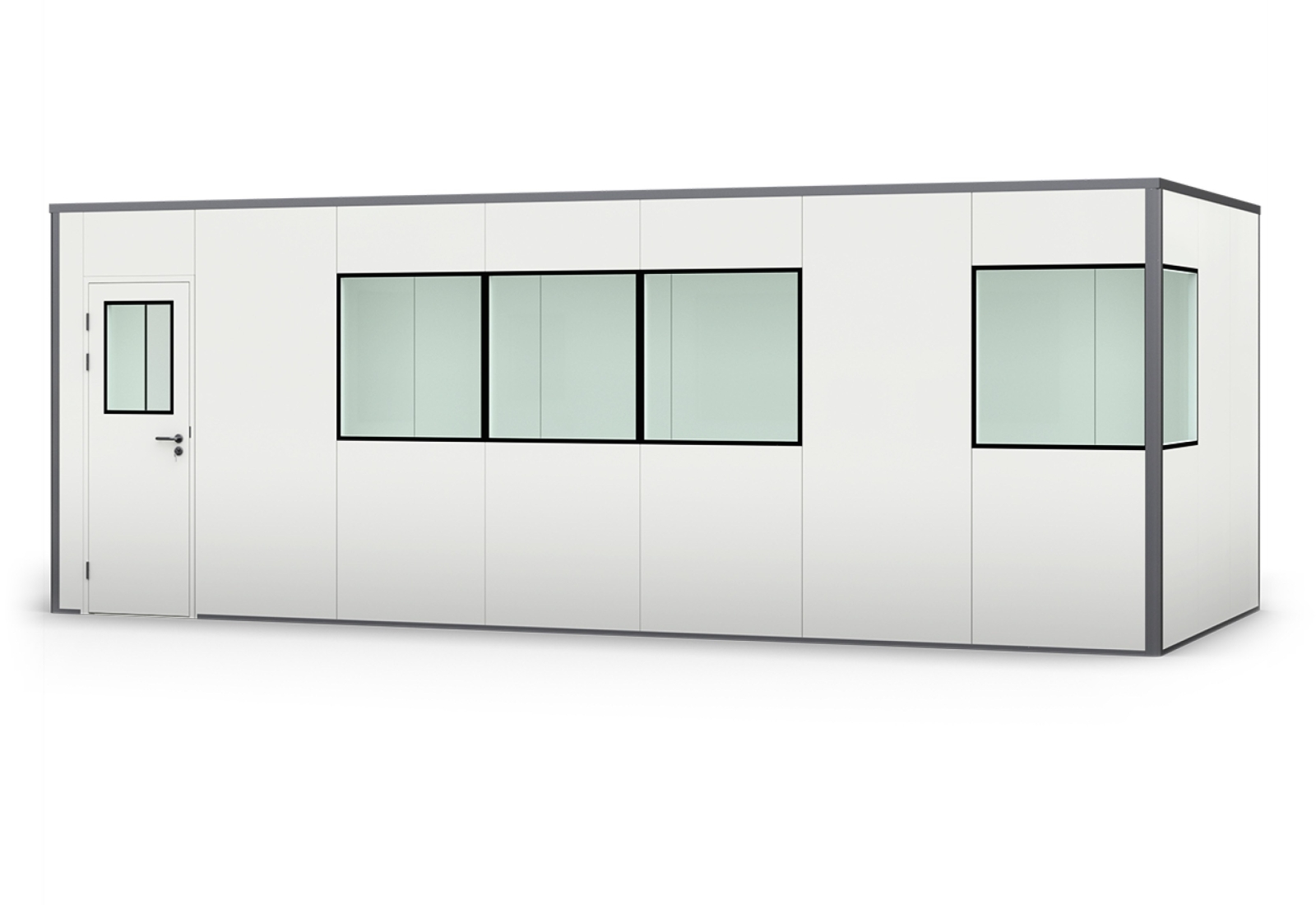 Warehouse office / prefab office PREFAB-21, 6 windows, 1 door (13 wall panels, 7 ceiling panels)