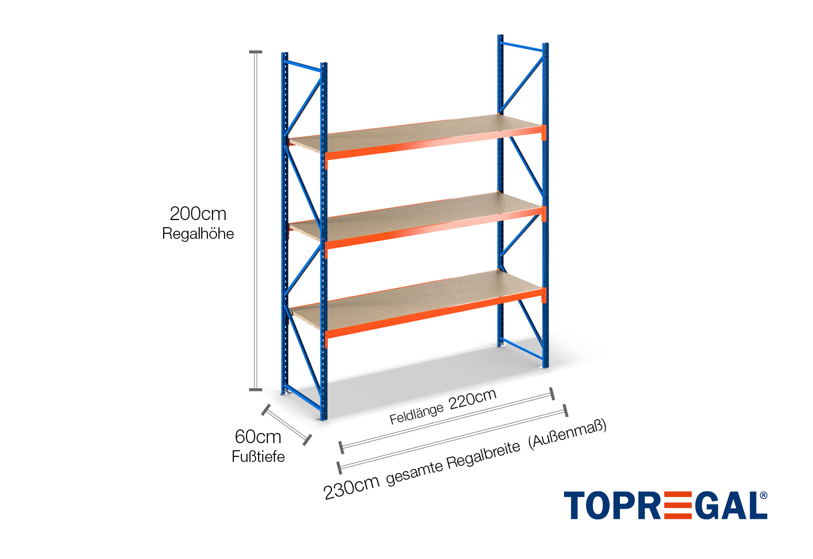 All data refer to evenly distributed loads. When loaded, the shelf load and field load must not be exceeded. In principle, the current guidelines on safety and health at work (german DGUV Rule 208-061) apply during use. TOPREGAL accepts no liability for accidents/damage caused by improper use. Our expert advisory team will be pleased to answer any questions you may have. Dimensions given are approximate and may deviate by a few centimetres. Contact us if you need the exact dimensions for your desired product.