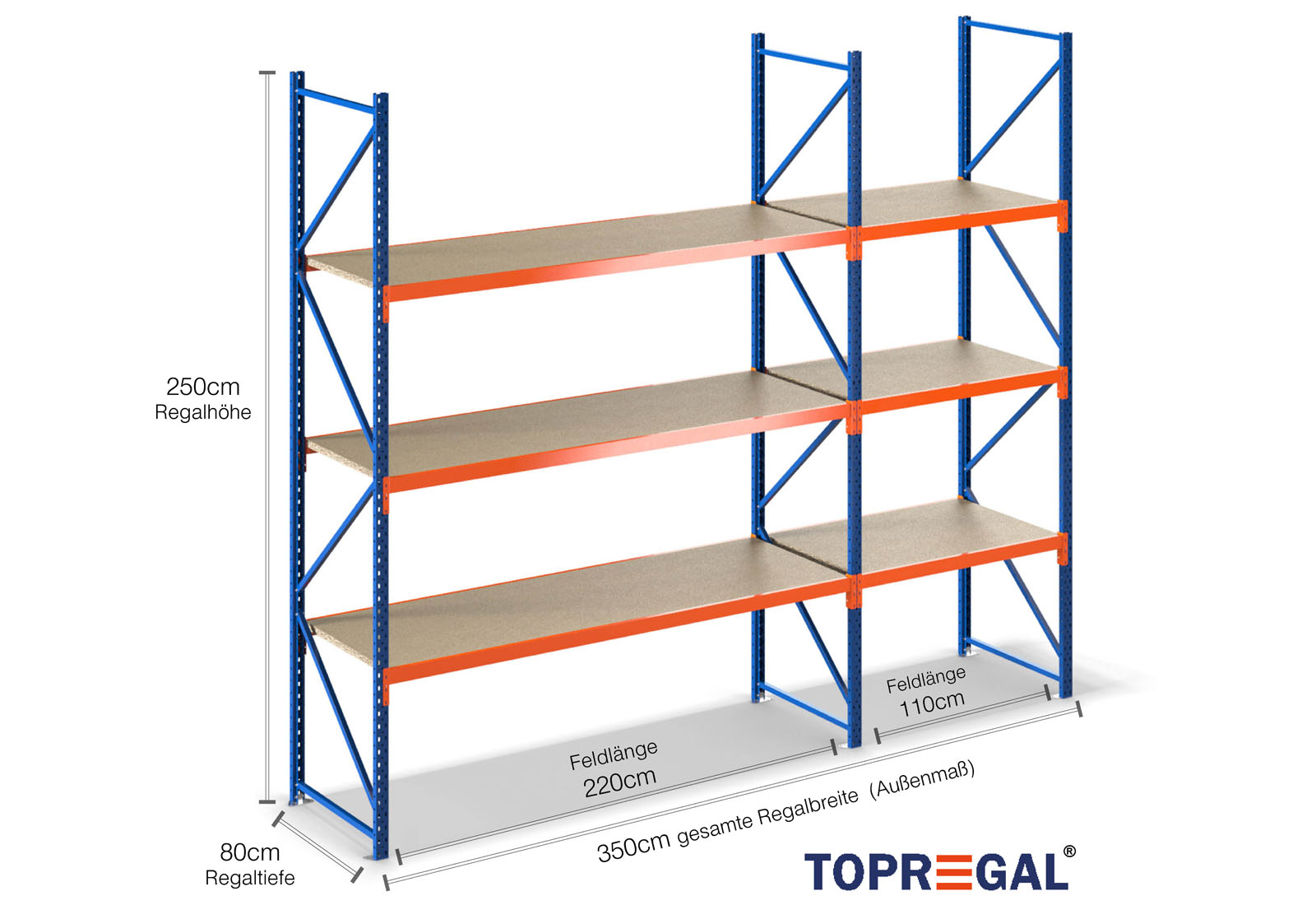 All data refer to evenly distributed loads. When loaded, the shelf load and field load must not be exceeded. In principle, the current guidelines on safety and health at work (german DGUV Rule 208-061) apply during use. TOPREGAL accepts no liability for accidents/damage caused by improper use. Our expert advisory team will be pleased to answer any questions you may have. Dimensions given are approximate and may deviate by a few centimetres. Contact us if you need the exact dimensions for your desired product.